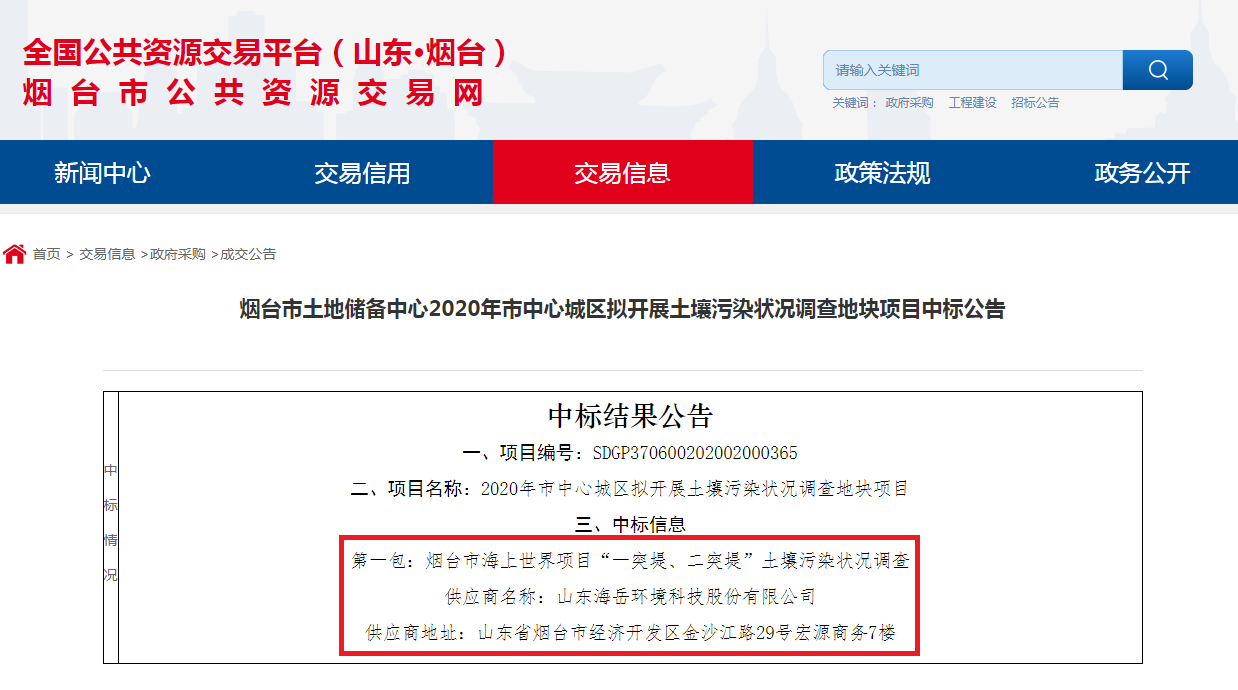 公司高分中标《烟台市土地储备中心2020年市中心城区土壤污染状况调查项目》